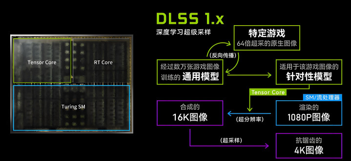 从NVIDIA RTX20系列开始,引入了DLSS技术,这种技术并不完全算是帧生成,但是一定程度抵消了开启光线追踪的消耗。DLSS第一代,也算是利用AI技术提升游戏帧数。